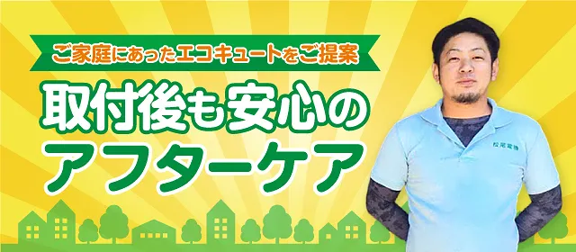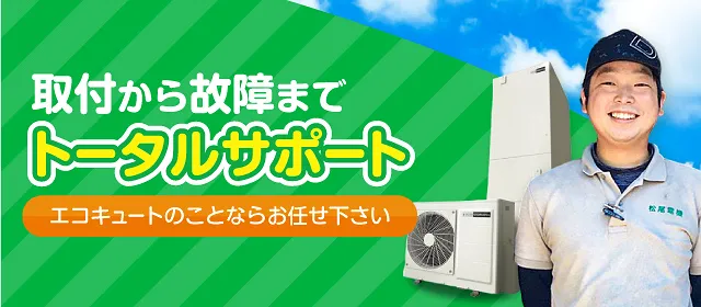 兵庫県西脇市にある松尾電機は、エコキュートの取付・修理はもちろん突然のトラブルにもしっかり対応。お見積りは完全無料なので、お気軽にお問合せください。