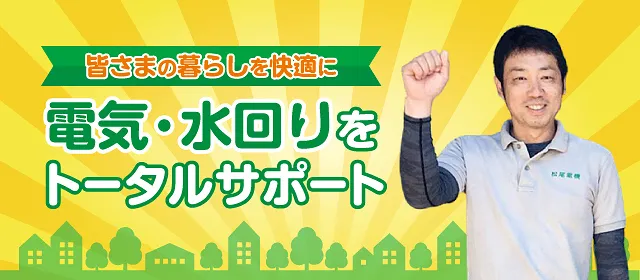 「夏はエアコンで快適に」「冬は温かいお風呂でリラックス」など、電気や水回りは皆さまの生活の中で一番関わりがあるもの。西脇市の皆さまの生活をより快適に暮らしやすいものにするために松尾電機はスタッフ一同、全力でサポートいたします。